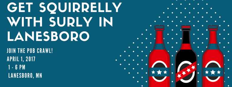 Get Squirrelly with SURLY is the first annual pub crawl in Lanesboro! We’re grabbing our beer glasses and partying all day!